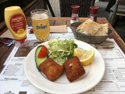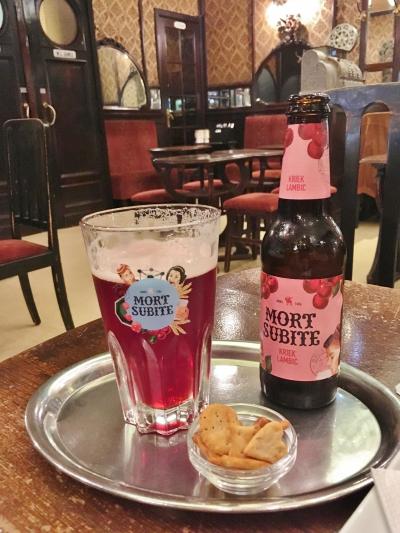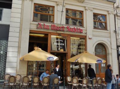 ギャルリー ・サンテュベールを通り抜けると、変わったモニュメントの右手に見えるビアホールです。1910年創業の老舗店ですが、入りやすい雰囲気のお店で、店内も趣あるクラシック内装で落ち着いています。お客さんもそこそこいて賑わっていました。ビールのことが詳しくないので、店員さんと相談しながら注文しました。1人でしたが居心地も良く、店内を眺めながらのんびりいただきました。