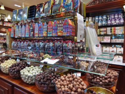 ギャルリー ド ラ レーヌ内にあるチョコレート屋さんです。高級チョコレート店が軒を連ねるアーケードですが、こちらは気軽に入れてお値段もリーズナブルです。種類豊富に並ぶチョコレートから、自分で好きなだけ袋に入れる量り売りなので、色々見ながら選べて楽しくお買物ができました。