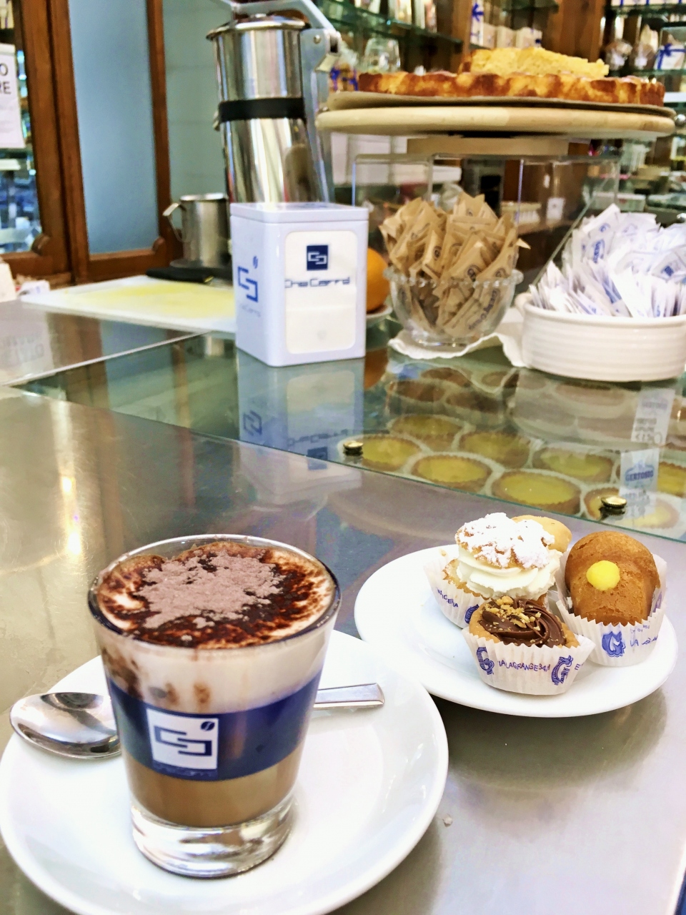 チョコレート巡りの1件目で訪れました。世界初のジャンドゥーヤチョコレートを発明し、1869年にイタリア王室の御用達となった老舗店です。可愛いアンティークデザイン缶が人気で、日本でも広く知られています。明るくてカラフルな店内にチョコレートが沢山、量売りで色々購入しました。他店でも色々買う予定だったので控えめにしましたが、日本の値段に慣れているので思った以上に安く、少し後悔しました。