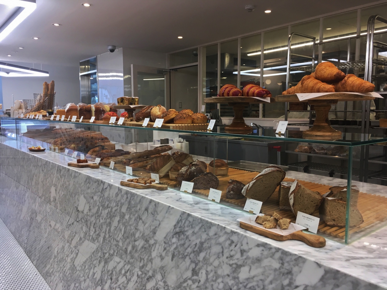 2018年に京都店がオープンしたと知り、店内でモーニングを頂きました。白を基調とした店内はとても広く、カフェコーナーはカウンターやゆっくりできるソファー席もあります。訪れたときは購入するお客さんが少し来店するぐらいで、カフェは貸し切り状態でした。入口すぐのショーケースにはケーキ、奥にパンが並んでいますが、思った程種類は多くなかったです。クロワッサンリンツァーとプディングを注文、クロワッサンの表面パリッとサクサクした感じを期待してたのですがそれ程でもなく、中に練りこまれたフランボワーズジャムとは相性よく美味しかったです。プディングは4種のパン生地が入ってるとのことで少し変わっていますが卵の風味がしっかりしてました。