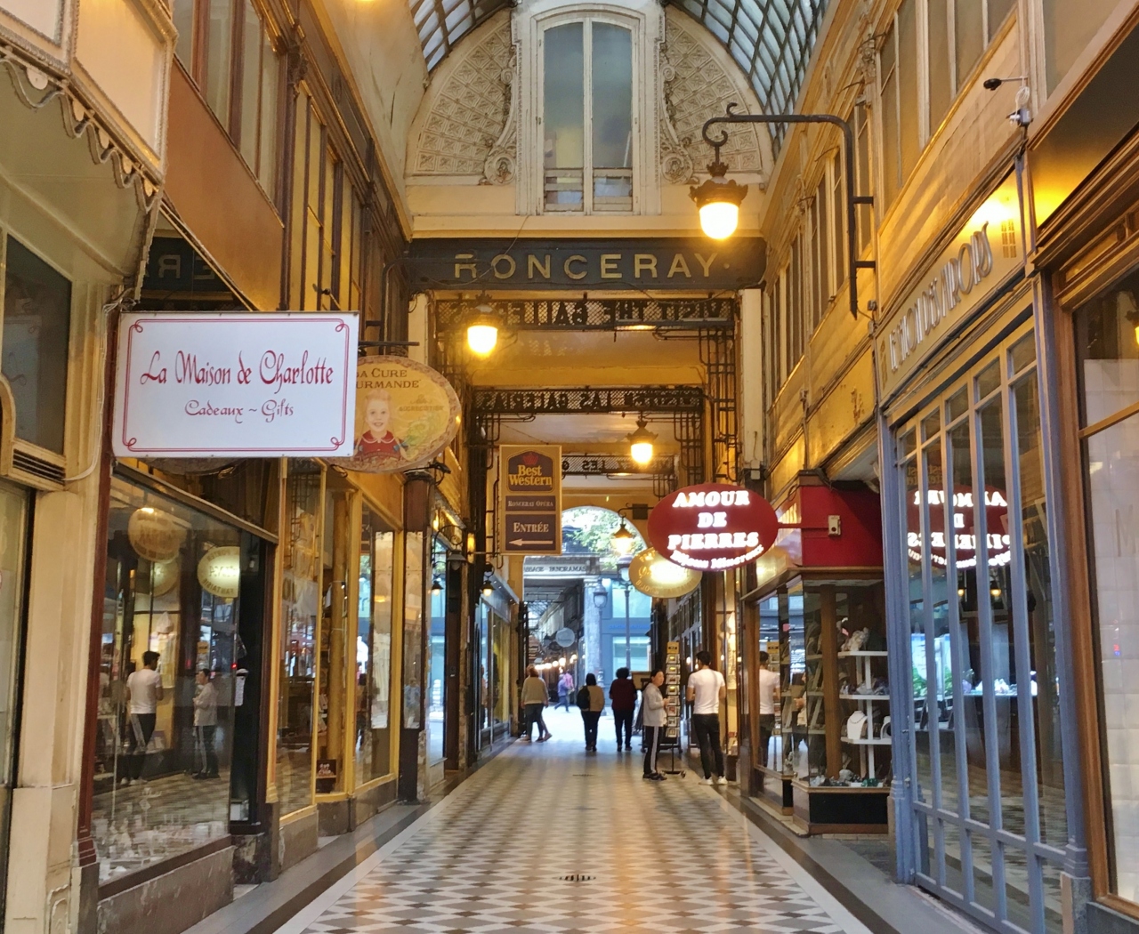 ガラスの天井や床タイルがレトロでオシャレなパッサージュです。パッサージュ内はグレヴァン蝋人形館や、ホテルショパンの他、お菓子屋さん、古本屋さん、お土産屋さん等が入っています。朝に訪れたので人も少なかったですが、趣ある雰囲気でした。
