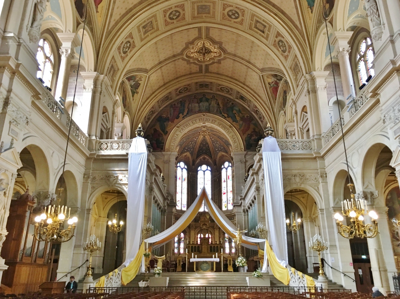 サン・ラザール駅から近く、プランタンやラファイエットからも徒歩で行けます。バスで付近を通りかかった時に教会を見て、大きな目立つ外観に圧倒されました。19世紀建造の教会で、鉄筋を使って造られているそうです。内部を見学したかったのですが、メーデーだった為か扉は閉ざされたままでした。