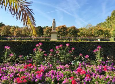 パレロワイヤル駅側から入ると、モニュメントのようなものがあり、ちょっとした撮影スポットとなっているようでした。奥に進むと彫刻や噴水がある綺麗に整備された美しい庭園で、訪れたときはちょうどバラが少し咲いていました。他の有名な庭園ほど観光客もおらず、地元の方がのんびり過ごしていました。
