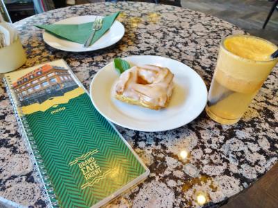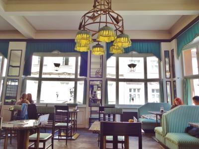 ツェルトナー通り沿いにあるキュビズム建築で有名な「黒い聖母の家」の2階にあります。カフェはグリーンがアクセントになっていて、窓から光も差し込み明るい雰囲気です。内装にもキュビズム様式が活かされ、とてもオシャレです。日本人が良く来るのか、店員さんから日本語で話しかけられ、注文から会計まで日本語で済みました。ここでしかいただけない伝統のキュビズムケーキ(シュークリーム)を頂きました。居心地もよく、素敵な内装を眺めながらカフェタイムを楽しみました。