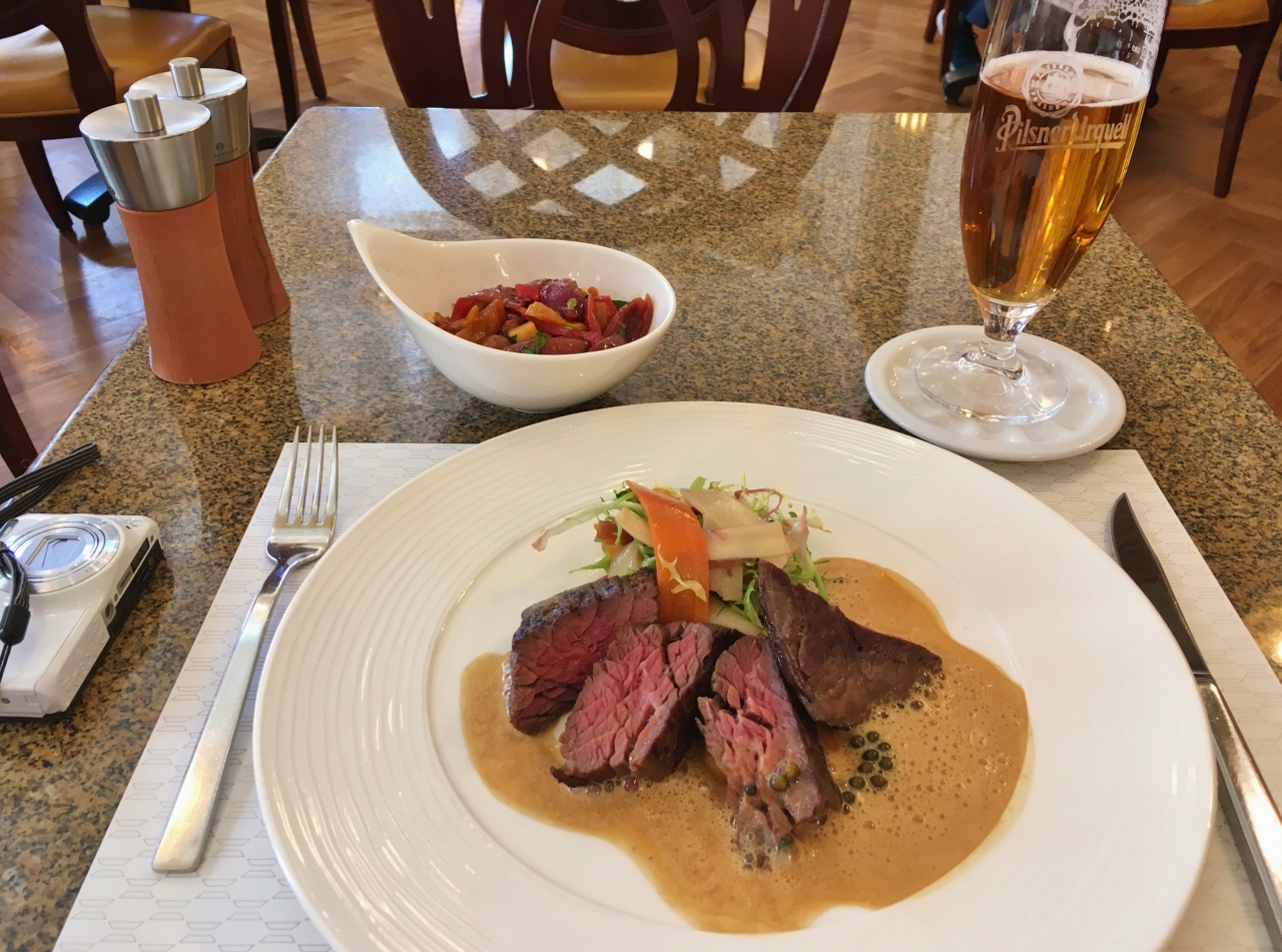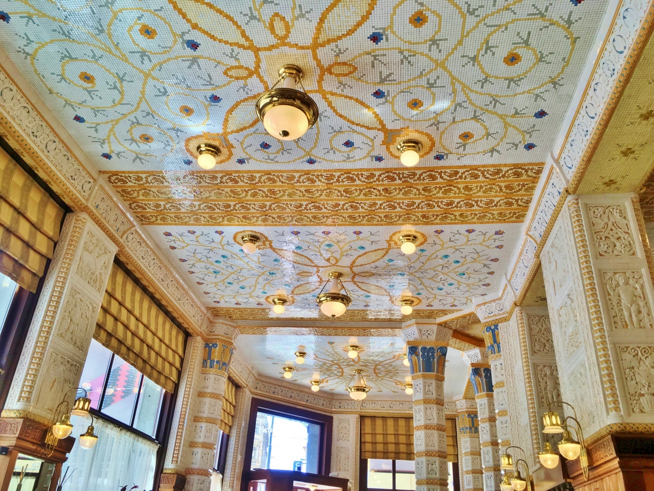 1914年にオープンした5つ星ホテル“アールデコ・ホテル・インペリアル”内併設のカフェです。前回ディナーと朝食ビュッフェで利用し、今回はランチで訪れました。 予約していなかったですが、日曜日だったので遅いブランチタイムを過ごしているようなお客さんもおられ、入店した時はあまり混雑していませんでしたが、その後は次々とお客さんが来ていました。天井を覆うモザイクタイルや装飾など、内装がとても素敵です。優雅な雰囲気の中で、ステーキを美味しく頂きました。