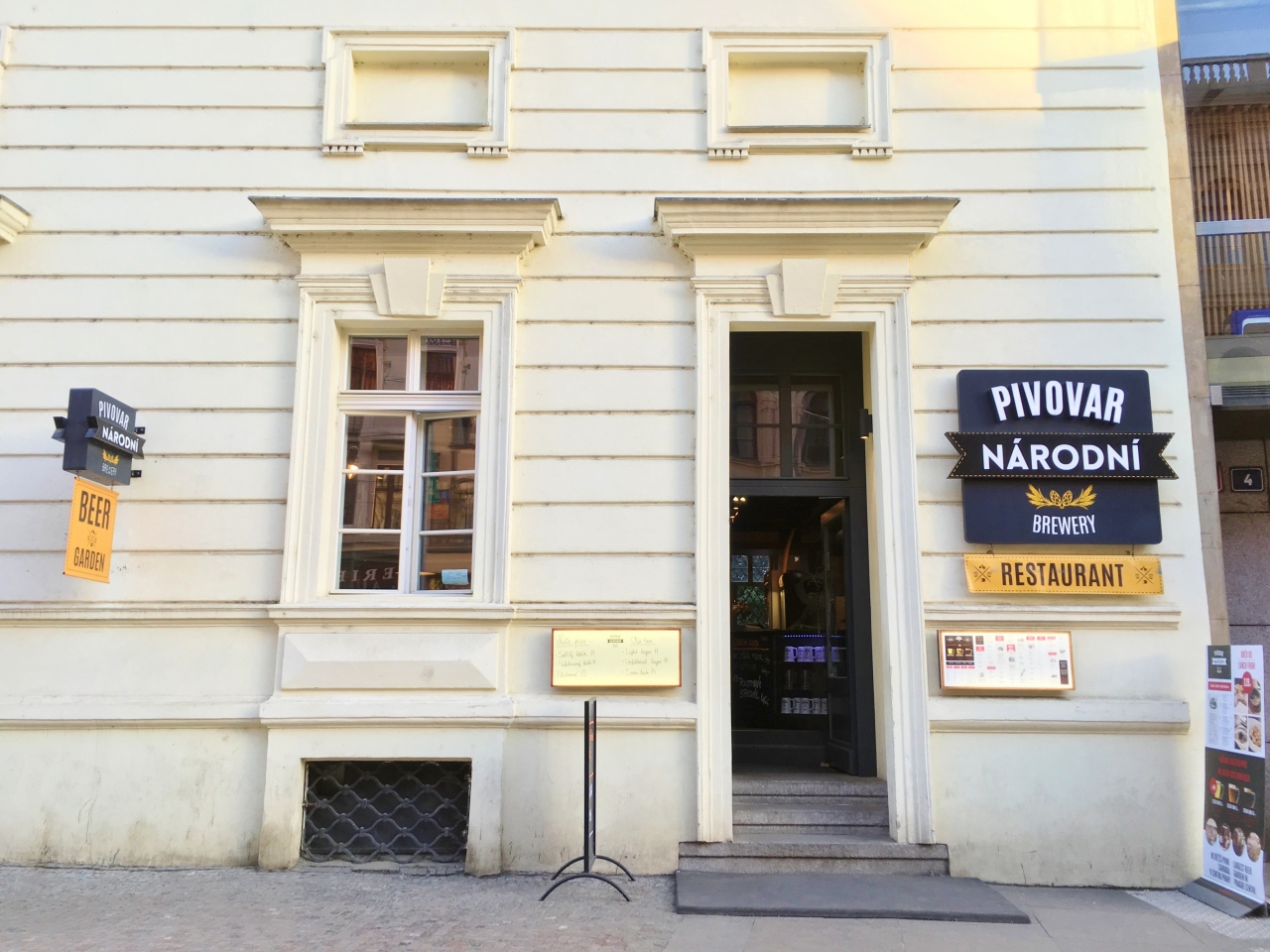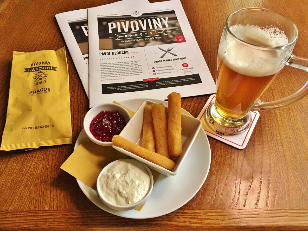 川沿いの国民劇場からナーロドニー通りを歩いていると看板がありました。チェコでビアホールにまだ行ったことがなく、1人でも入りやすそうな感じだったので思い切って入店しました。パブ兼レストランといった店内で、特に雰囲気がある内装ではないです。早い時間だったので、お客さんも数人程度、テーブルも1人で座れました。ビールのことは詳しくないのでお勧めを聞き、おつまみにチーズフライを注文しました。空いていることもあり1人でも居心地良く、設置されていたTVを見ながら美味しいビールを頂きました。