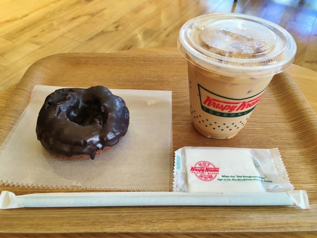 キューズモールの2階入口前にあり、向かいにはフライングタイガーがはいっています。新型コロナウイルスの影響で利用できる席は限られていましたが、空いていたので入りました。ドリンクだけと思っていましたが、ドーナツとセットで少しお安くなるので注文してしまいました。久しぶりにいただいたドーナツは至って普通のお味でした。