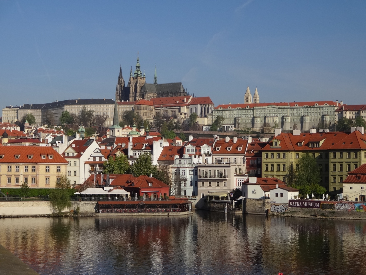 プラハで最も有名な観光名所なので朝早くから大勢の観光客が訪れます。プラハ城まではカレル橋を渡り、坂や階段を登って入口へ向かう人が多いですが、トラム22番の“Pražský Hard駅”で降りて北側から入るルートもあり、人も少なく空いています。内部は聖ヴィート大聖堂、旧王宮、聖イジー教会、黄金の小道等見学箇所により料金も変わります。前回訪れた時に見学したので、今回は外観だけ見に行きました。プラハに滞在していると、1度は訪れたくなるお城です。ストラホフ修道院近くにプラハ城と街並みを一望できるところがあり、とても素晴らしい景色です。トラムでも行けますし徒歩で20分程、歩くなら修道院→プラハ城が下り坂で楽です。