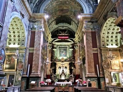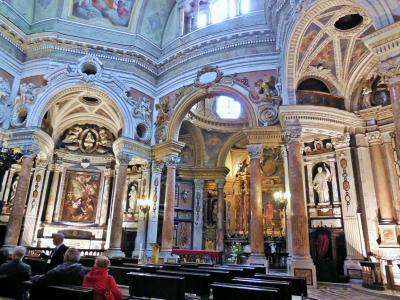 サン・カルロ教会と共に建ち、「双子の教会」として知られています。クリスティーヌ・ド・フランスの命により1639年に工事が着工、一時中断を経て、ファザードは1715~1718年に建設されたバロック様式の教会です。壁面は十字架を背負うキリストなど、フレスコ画が施されて美しいです。
