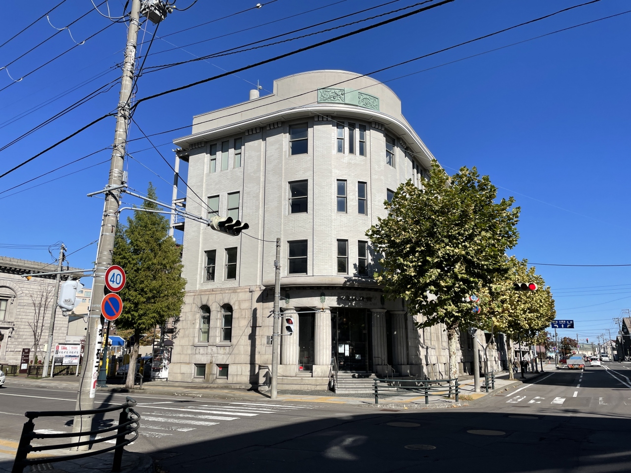 1907年に建設、小樽では数少ない赤煉瓦造りの建物で小樽市指定歴史的建造物に指定されています。重厚感ある外観に窓枠の装飾も美しいです。小樽運河からは少し離れていますが近くには旧日銀小樽支店などがあり、一緒に建築巡りをするのも良さそうです。