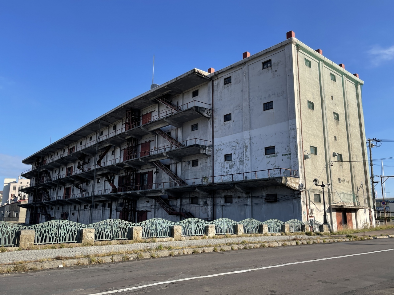北運河の竜宮橋そばにある建物で、朝付近を散策中に通りました。シンプルな外観ですが、製品を運河へ搬出するためのスパイラルシュートやエレベーターなど機能的な設計がされ、当時として画期的だったと思われます。ただ、半分廃墟のような感じでこのままでは朽ちてしまうのではと心配になりました。