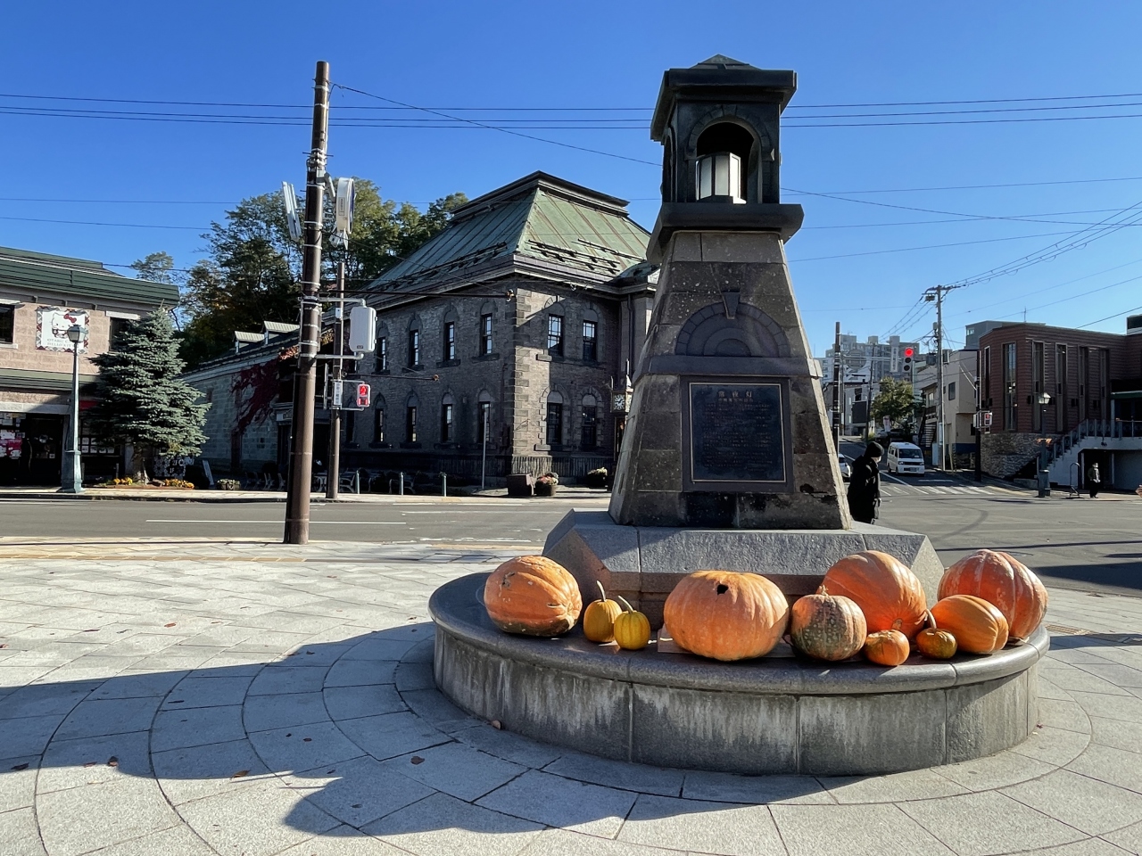 メルヘン交差点の広場中央にあります。明治時代にあった小樽海関所灯台を再現したもので、1997年に交差点の整備にあわせて設置されました。周囲の建物の雰囲気にあったレトロな感じで、訪れたハロウィンの時期は飾り付けがされていました。点灯する夜に見学すれば良かったです。