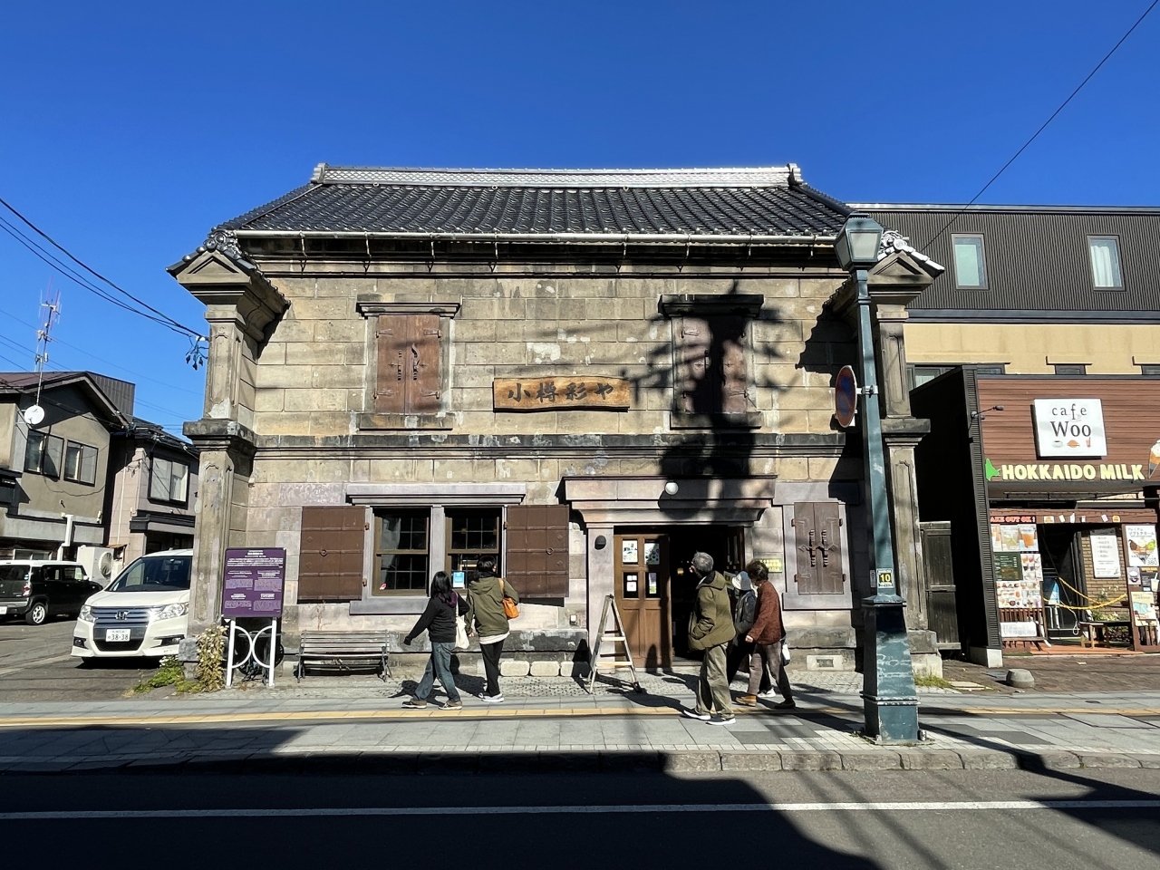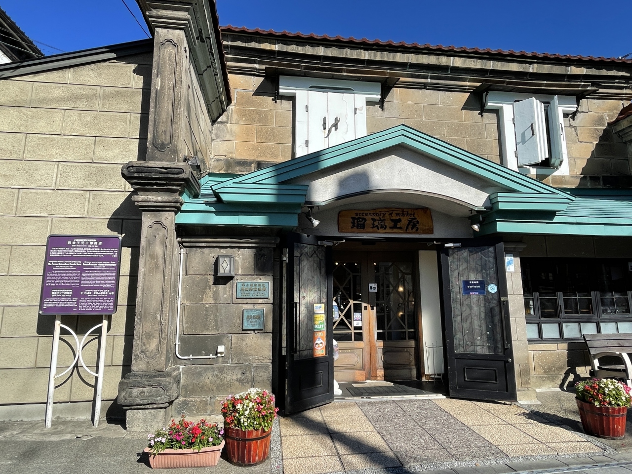 小樽といえばガラス製品が有名で、ガラス工芸のショップやお土産物屋が立ち並ぶ堺町通りにあります。1907年に建てられた歴史ある建造物で、現在はガラス体験でができる店舗として再利用されています。とんぼ玉の製作体験が好評のようで、ガラス細工が女性客に人気の様でした。