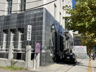 北運河を散策中に通りました。運河公園の奥に建つ建物で、重要文化財に指定されている旧日本郵船小樽支店と同時に、隣接して建てられました。現在小樽支店の建物は工事中でシートに覆われ中の様子が全くうかがえませんが、こちらは外観のみ見学できます。