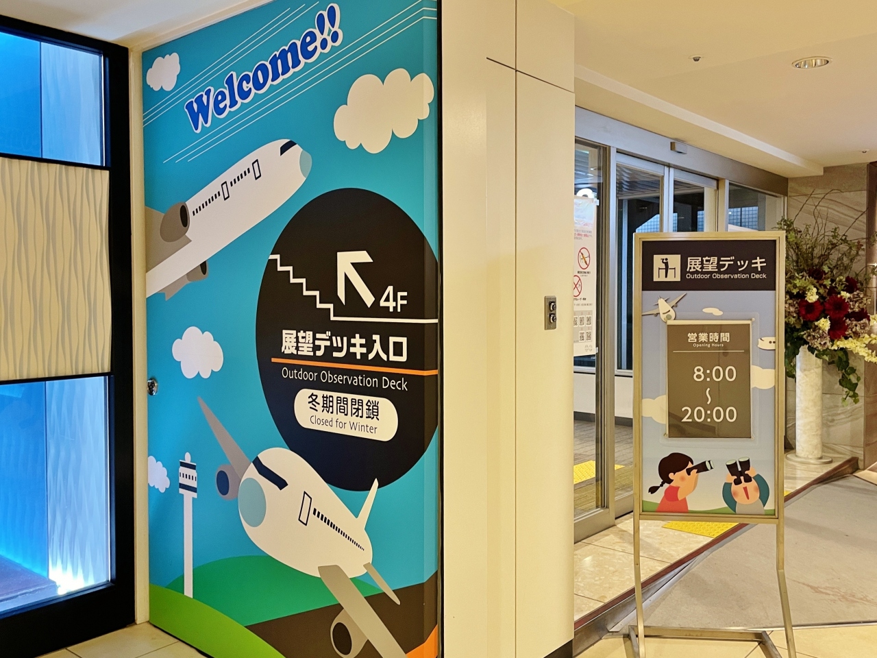 入口はターミナルビル3階エアポートヒストリーミュージアムの横、奥にはカードラウンジがあります。思ったより小さかったですが、間近で飛行機の離着陸を見ることができます。フードコートからも眺めることはできますが、天候が良い時や写真を撮りたい場合は展望デッキがおすすめです。