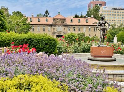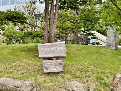 札幌市立大通高等学校の角にあるちょっとしたスペースに建てられている石碑です。1902年に開校した高等女学校は戦後に男女共学となり、「北海道札幌北高等学校」と改称されました。その後も移転や変遷などが続き、現在の高等学校は2008年に開校したとのことです。