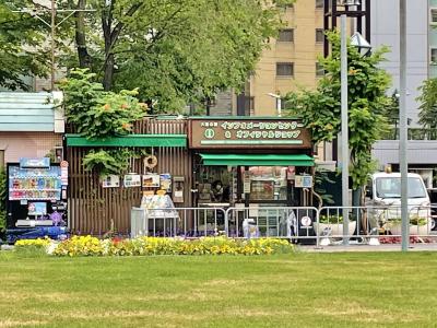 大通公園西7丁目、ちょうど中間あたりにあるインフォメーションセンターです。かなりこじんまりとした建物で中も狭いですが、大通公園オリジナル商品などお土産も販売されていました。テレビ塔にもインフォメーションセンターがあるので、マップなどはそちらでも手に入れることができます。