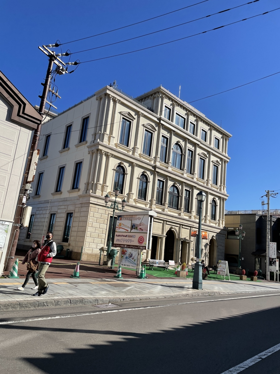境町本通りにある、イタリア・ヴェネツィアの宮殿を再現した美術館です。北一硝子が管理しているとのことで、中央にはゴンドラが飾られていて、ガラス製品や、家具、調度品が展示されています。1階は無料なので立ち寄った際に気軽に見学できます。