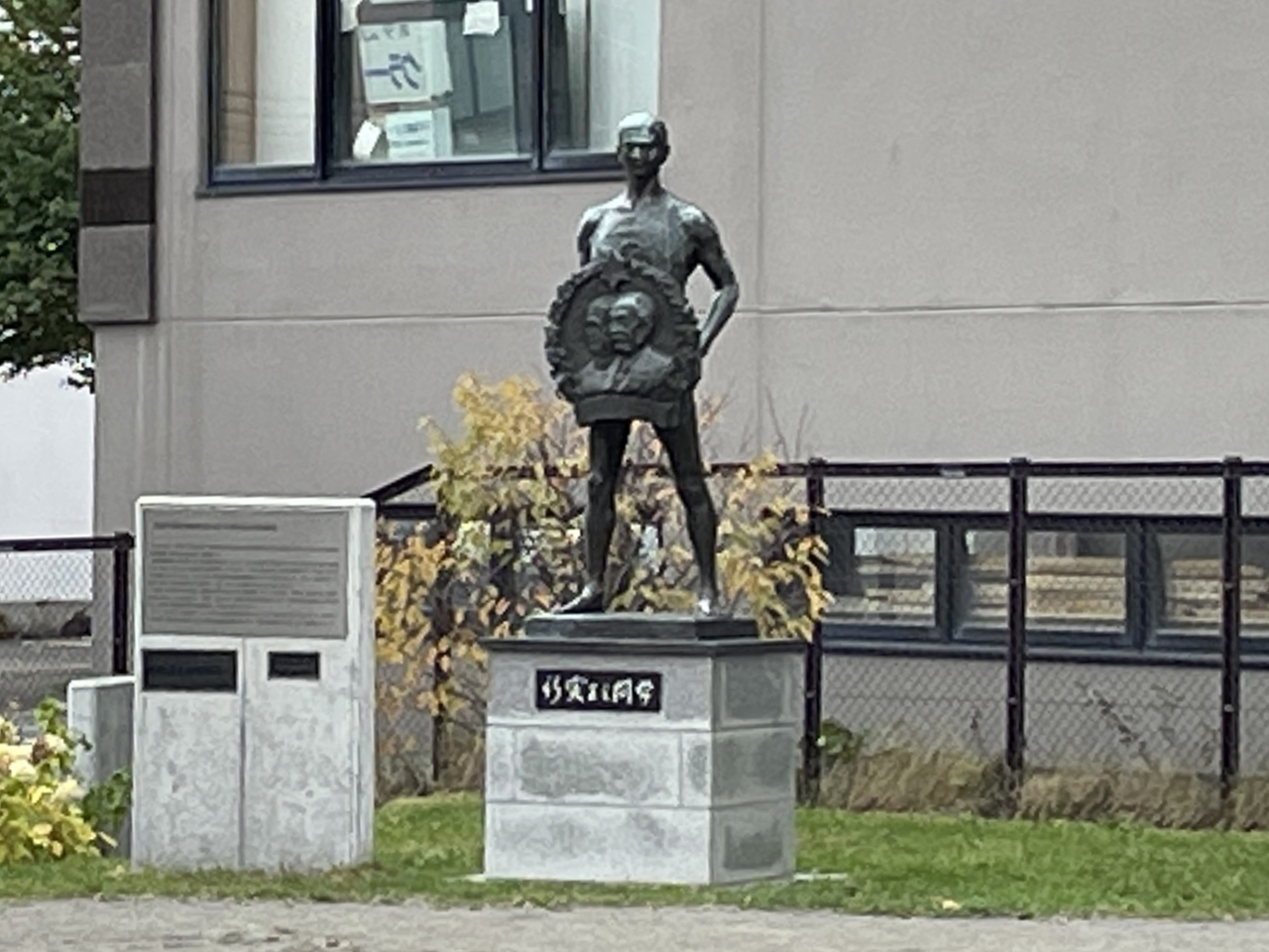かつて遠友夜学校があった場所が整備され、現在は新渡戸稲造記念公園となっています。札幌農学校出身の新渡戸稲造の功績を称えて建てられた顕彰碑です。青年が夫妻の顔が描かれたレリーフを持っているという少し意外なデザインでした。