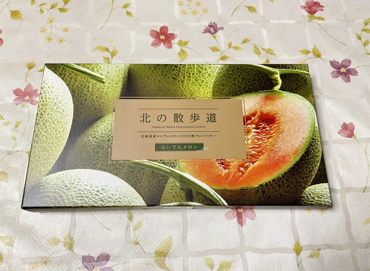 国内線ターミナルビルの2階にある千歳で老舗のスイーツ店です。ハスカップジュエリーが有名ですが、今回は姉妹品の「北の散歩道」らいでんメロン味を購入しました。クッキーの上にゼリーの入ったチョコレートがのっていて、メロンの香りと甘みを感じる上品なお菓子でした。
