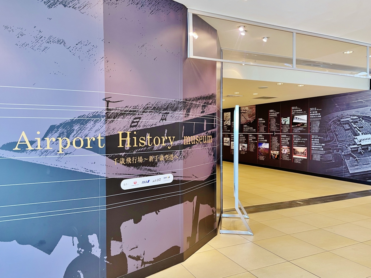 国内線ターミナルビル3階、フードコートの隣にあります。新千歳空港の歴史がパネルで説明されている他、歴代キャビンアテンダントの制服や飛行機の模型などが展示されています。昔から現在までの変化を見比べることができて興味深かったです。近くには展望デッキもあり、空港での待ち時間を使って見学できます。