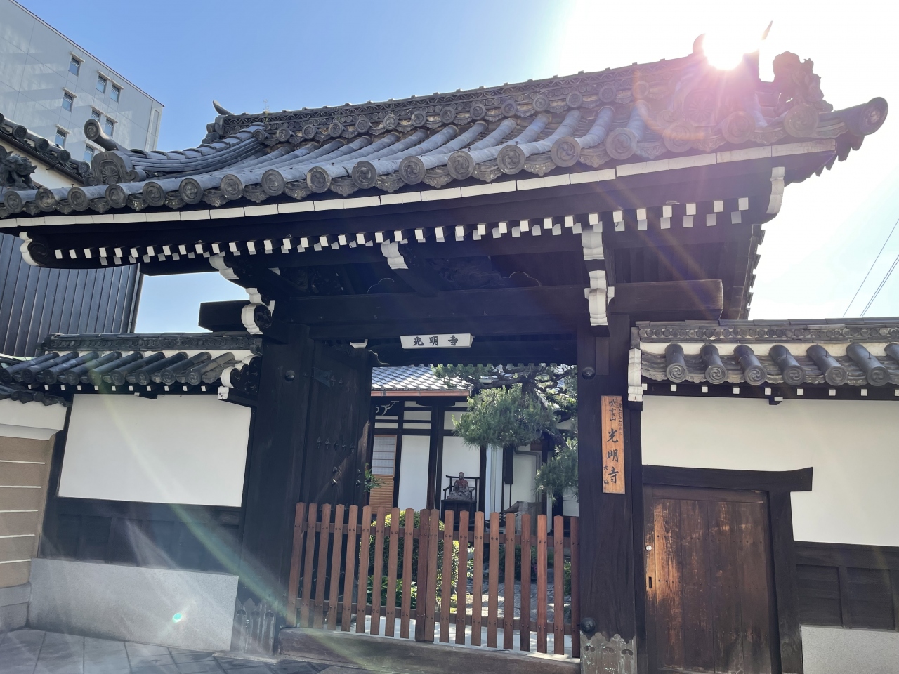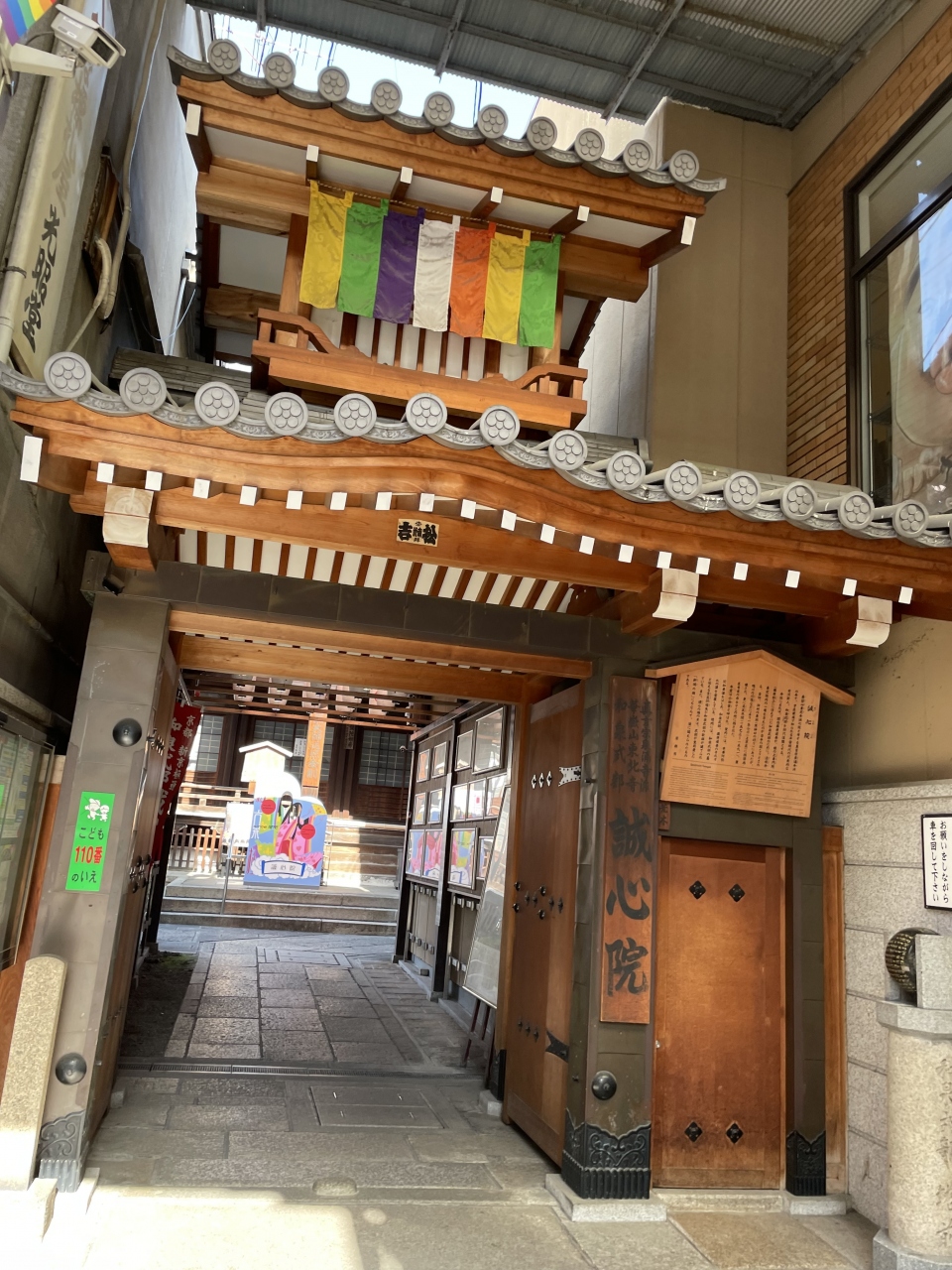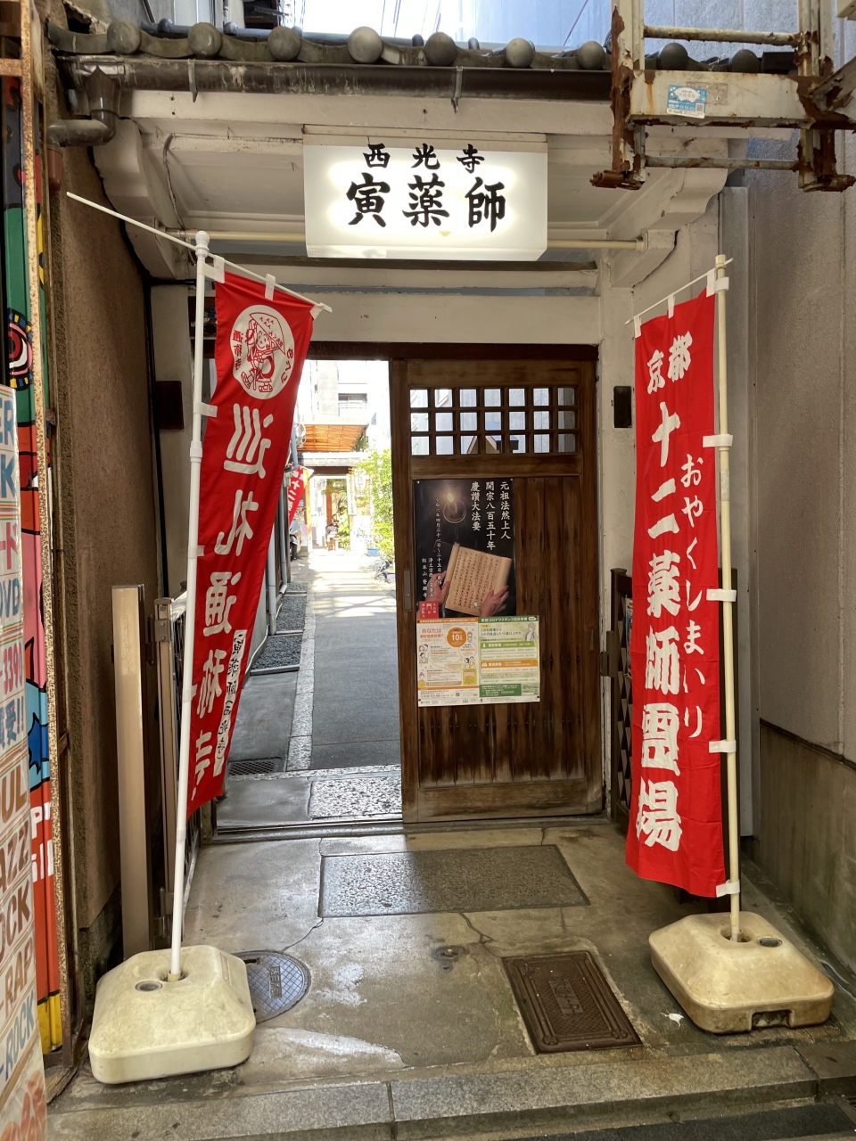 新京極商店街の中程から少し東側へ進んだところにあります。創建は平安時代にまで遡る歴史あるお寺です。別名を倒蓮華寺といい、阿弥陀如来像の蓮華の台座が逆さになっていることが名前の由来とのことです。商店街にあるので中は狭く、建物も現代建築となっています。