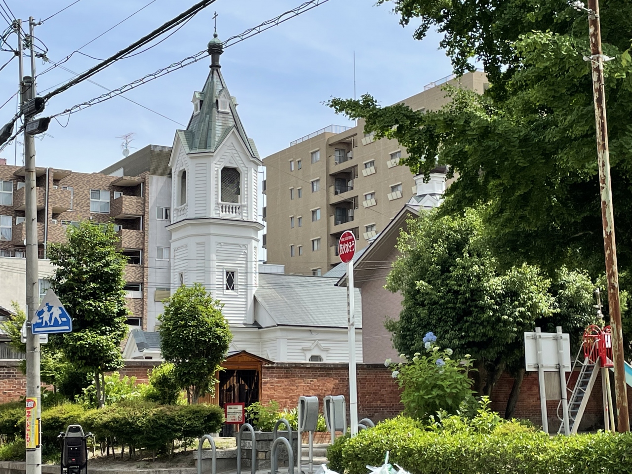 1903年に完成したギリシャ正教(ロシア正教)の教会です。聖堂は、京都府旧庁舎を手がけたことで知られる松室重光による設計で、日本正教会の現存する聖堂・会堂のうち最古の聖堂とのことです。扉が閉じていたので中には入れませんでしたが、空に突き出すようにある十字架が印象的でした。