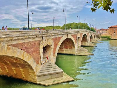 ガロンヌ川に架かる橋の中で最も古い橋です。煉瓦造りのアーチが美しく、トゥールーズの街並みに馴染んでいます。ポンヌフ橋から隣接するサンピエール橋まで川沿いを散策しました。並木道を少し進むと橋の全景を眺めることができ、周囲の景観も良くおすすめです。