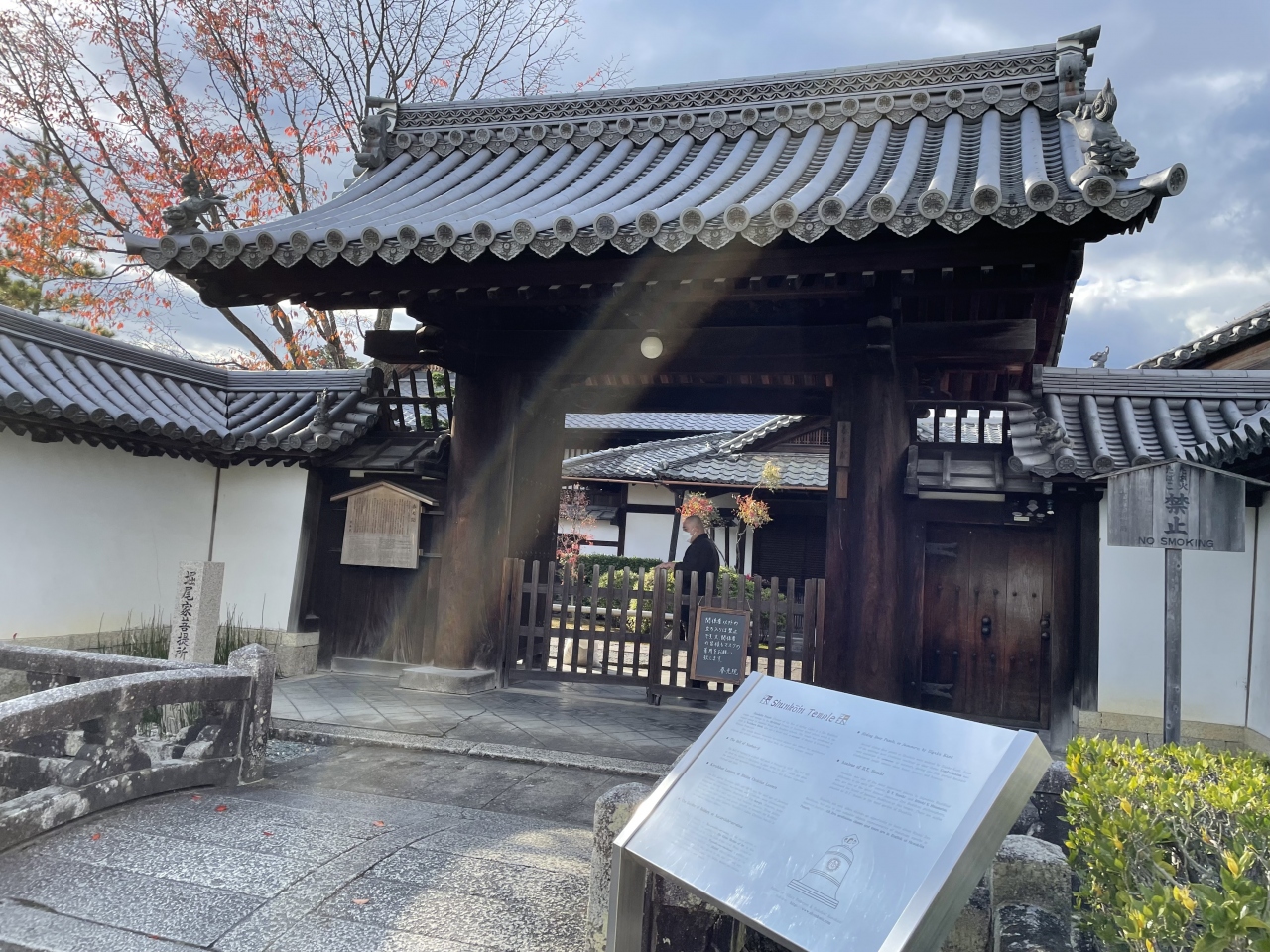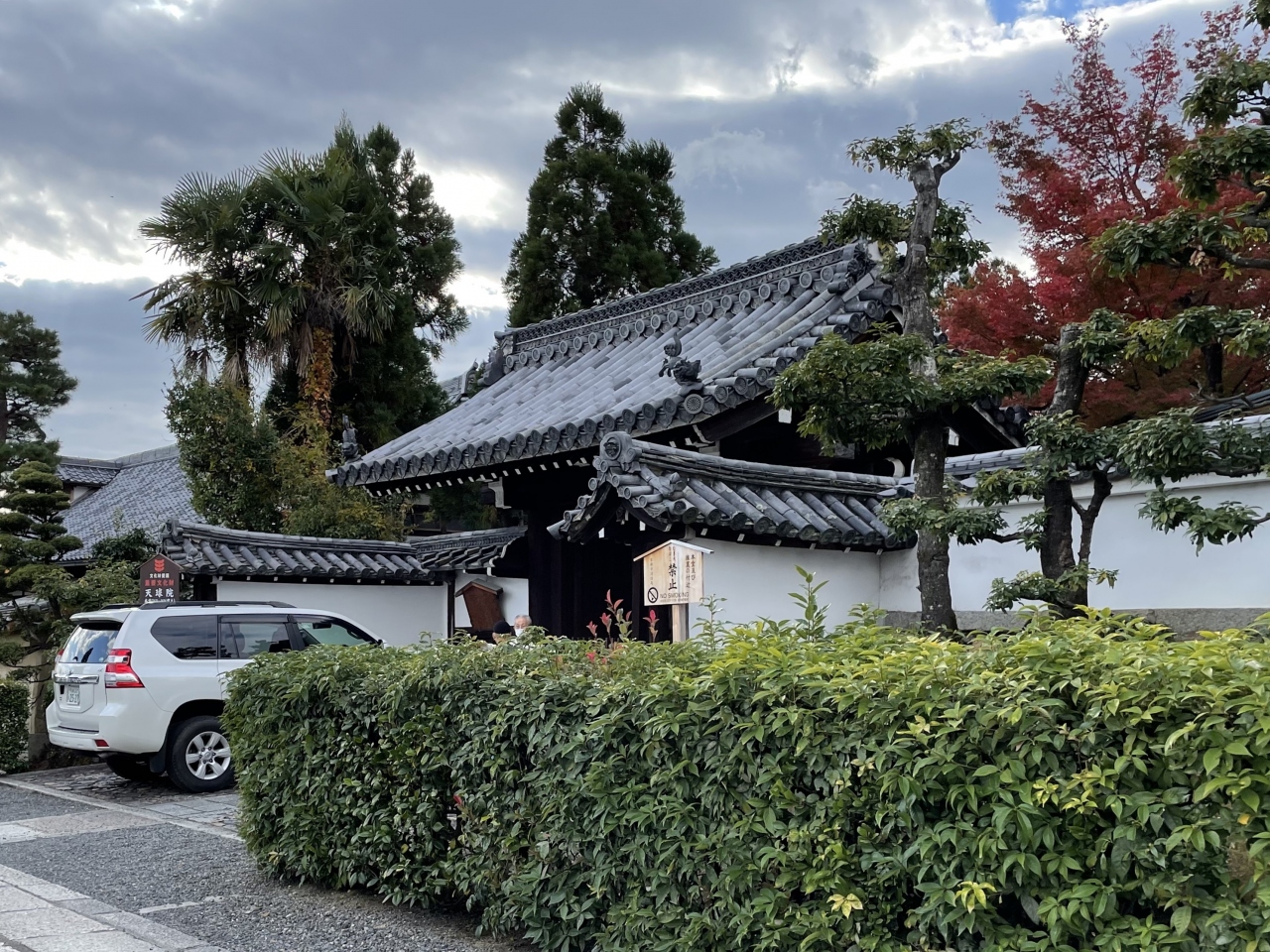 妙心寺の塔頭寺院の一つで、北門からすぐのところにあります。1597年に戦国武将稲葉一鉄の菩提を弔うため、息子の貞通が開創したお寺です。非公開でしたが、門横の扉が開いていたので良く手入れされた庭園を見ることが出来、紅葉した木々が綺麗でした。