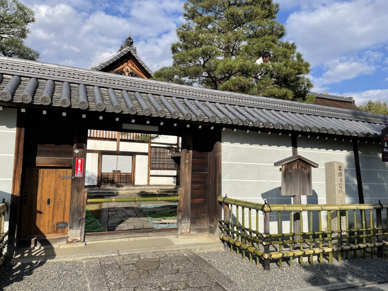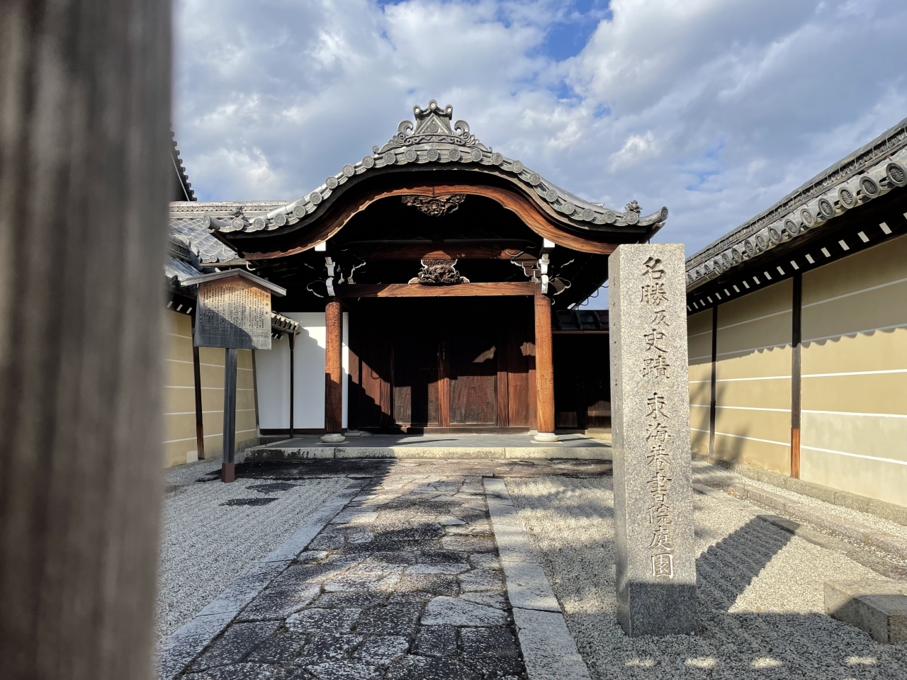 臨済宗妙心寺派の大本山である妙心寺の塔頭で、1645年姫路藩主・松平忠弘が父・忠明の菩提を弔うために創建されました。境内を北西に進んだ先にありますが、周囲は人通りもなくとても静かでした。妙心寺に多くある寺院と同様に、こちらも非公開で拝観できませんが、入口横から中に入って庭園を鑑賞することができました。