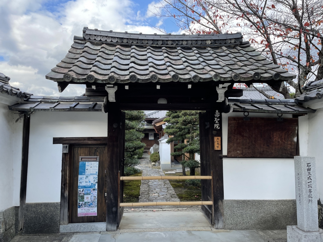 臨済宗妙心寺派の大本山である妙心寺の塔頭です。1599年、石田三成が父である正継公の菩提寺として創建されました。創建当時は現在の4倍の敷地面積がありましたが、関ヶ原の戦いで敗れ縮小を余儀なくされました。絵師狩野永徳によると伝えられている庭園がありますが、残念ながら通常公開されていません。