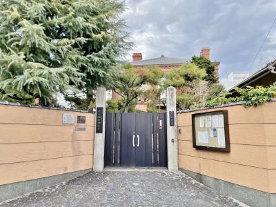 嵐電の北野白梅町駅から南へ数分進むとで降りて西大路通りを南に進むと、煙突がある洋館が見えてきます。京都綿ネルの専務だった藤村岩次郎の旧邸宅で、戦後は京都工芸繊維大学が所有、現在は繊維研究所として使用されています。門の外から眺めるだけでしたが、煉瓦造の住宅が周囲と異なり目立っていました。