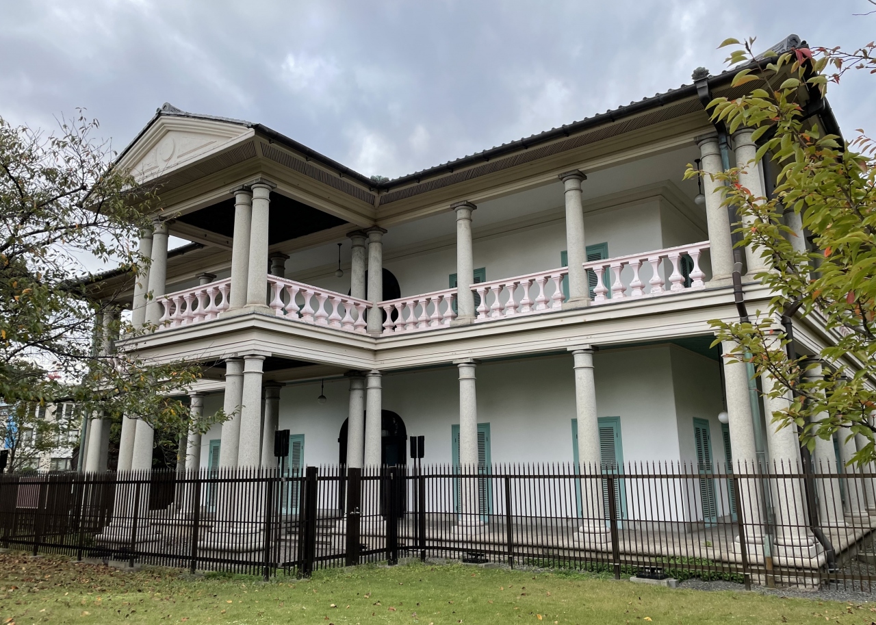 造幣局前の大通りをはさんだ向かい側にあります。1871年に造幣局の応接所として建てられ、重要文化財に指定されています。2階建て総煉瓦造りの建物で、白い漆喰塗りの壁が美しい洋風建築です。普段は非公開ですが、事前予約で3月に数日だけ内部見学できます。