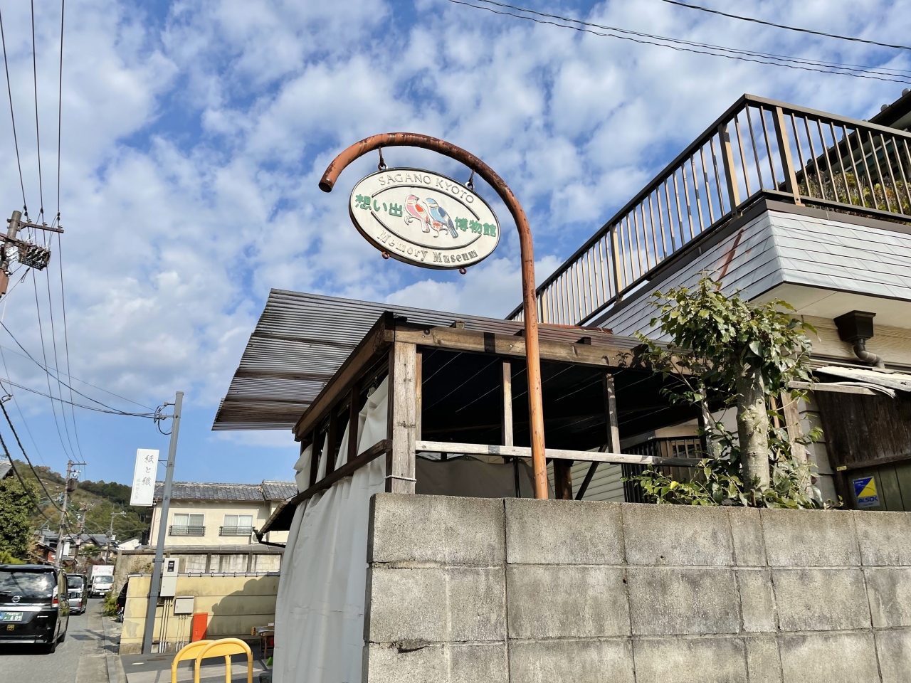 二尊院から化野念仏寺へと続く道を進むとすぐ、「紙と織嵯峨野工房」というお店の隣にありますが、博物館の看板がかかっていただけで閉まっていました。定休日というような感じではなく、ずっと開いている様子がないような外観でした。