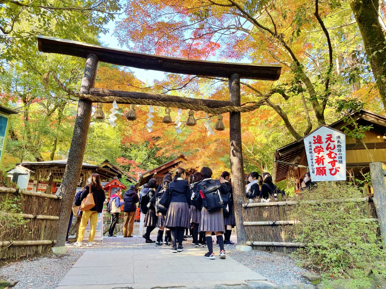 源氏物語「賢木」の巻の舞台とされる古い歴史のある神社です。特に縁結びで有名で、縁結びの神・野宮大黒天のそばにある亀石を撫でながらお祈りをすると、1年以内に願い事が叶うとされています。京都嵐山の竹林の小径にあり幻想的な雰囲気が漂っていますが、混雑していてゆっくり参拝することができませんでした。