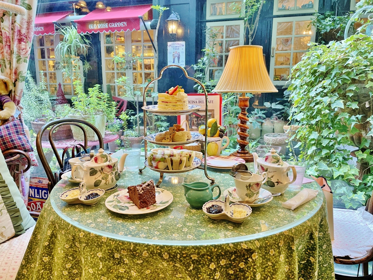 淀屋橋駅や肥後橋駅からすぐ近く、オフィスビル街の地下1階にある英国風ティーサロンです。ちょっとした隠れ家の様な一角に、姉妹店と奥のパブと併せて3店舗あります。大きな窓から緑あふれる景色も良く、店内は可愛らしい雑貨が品よく置かれています。アフタヌーンティーセットを注文しました。週末なので開店の11時から頂けます。紅茶についても丁寧に説明があり、サンドイッチやスコーン、ボリューム満点のケーキと共にゆっくりティータイムを楽しむことができました。