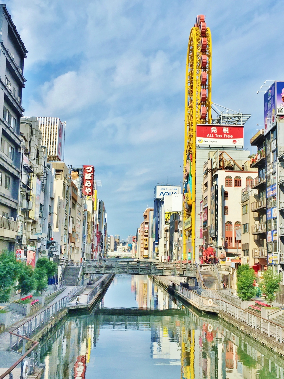 大阪ミナミの繁華街を東西に流れる川です。あまり綺麗とは言い難い川ですが、川自体よりグリコの大看板やネオンで有名な場所で、記念写真を撮る観光客が多く混雑していましたが、コロナの影響もありそれ程人も多くなかったです。