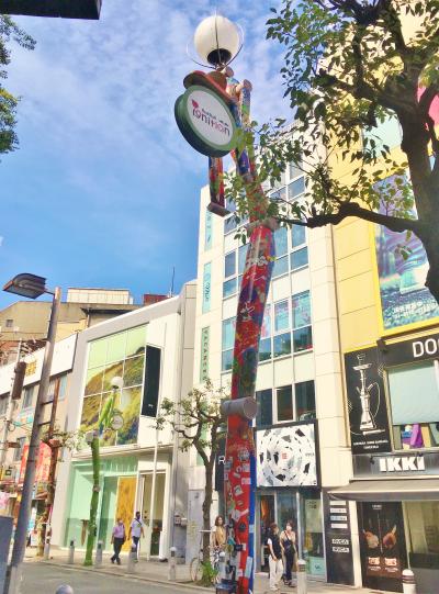 アメリカ村を散策していると所々にカラフルなデザインの街路灯が目につきます。アーティストなどが手がけたオリジナルデザインの人型街路灯です。2013年より3年かけて行われた街路灯アートプロジェクトで、全部で50基もあるそうです。色々なデザインの街路灯があり、見ていて面白かったです。