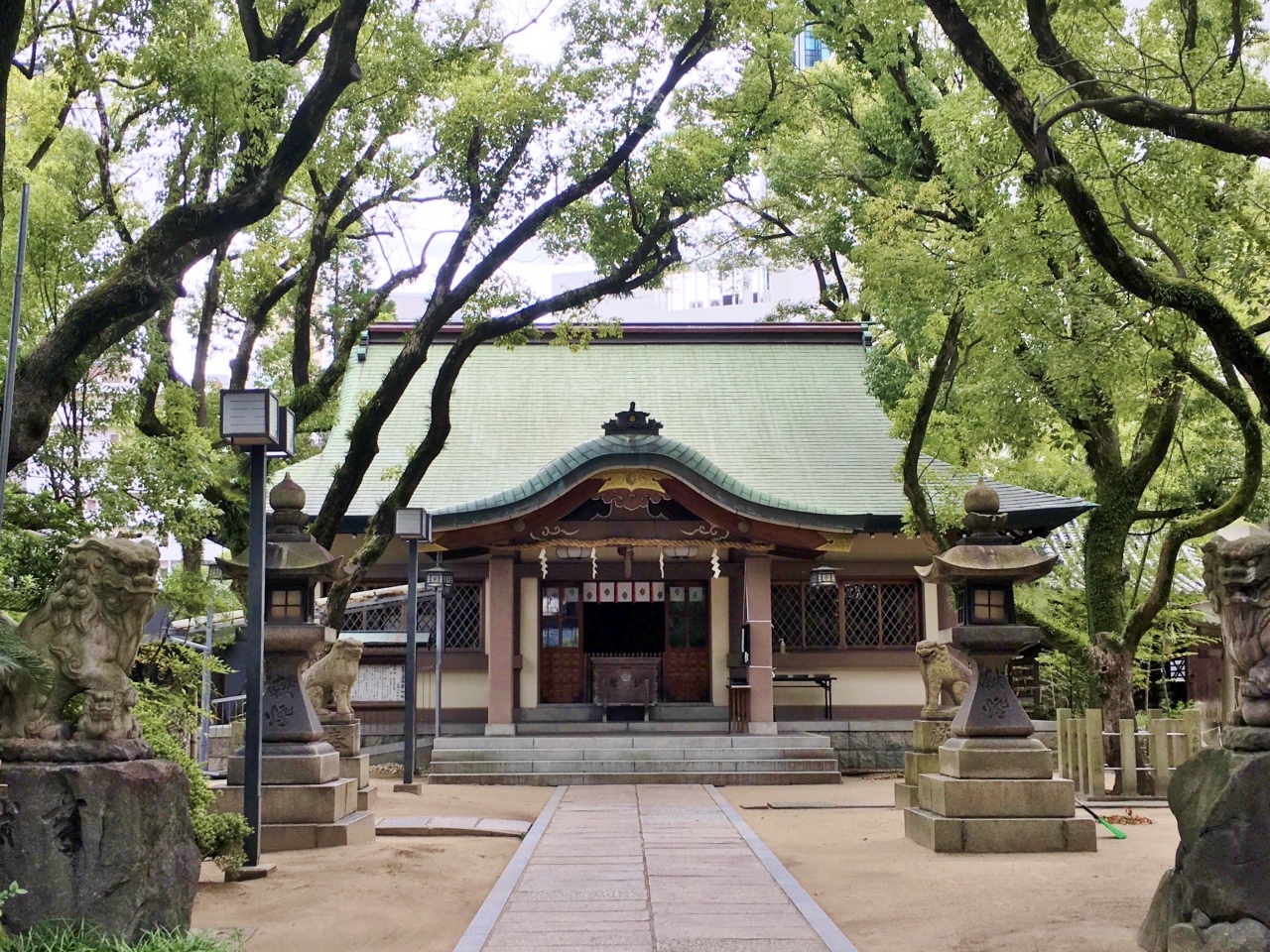 JR福島駅から徒歩10分程、浦江公園内にあります。創建年代は不詳ですが足利時代には存在していたとのことです。かつては神仏習合の神として牛頭天王社や祇園社などと呼ばれていましたが、1872年に「素盞烏尊神社」と改称、別名を浦江八坂神社といいます。境内には末社もあり、公園内にありながら落ち着ける所となっています。