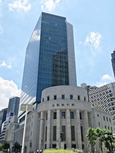 難波橋のたもと、大阪証券取引所前にある銅像です。薩摩藩に生まれ、明治以降は大阪経済の立て直しに尽力した重鎮の一人です。2004年に大阪証券取引所の新ビル完成に伴って建てられました。背後にある大阪証券取引所の建物が円筒形の重厚な西欧風建築で、大きく立派な銅像がさらに映えます。