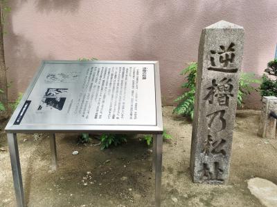 大阪福島区付近にあったとされる老松のことで、マンションの植え込みに碑と説明文があります。1185年の源平合戦で、源頼朝から平家追討の命を受けた源義経が、梶原景時と老松木の下で論争を行ったとのことです。少し意表を突く内容の石碑で驚きました。