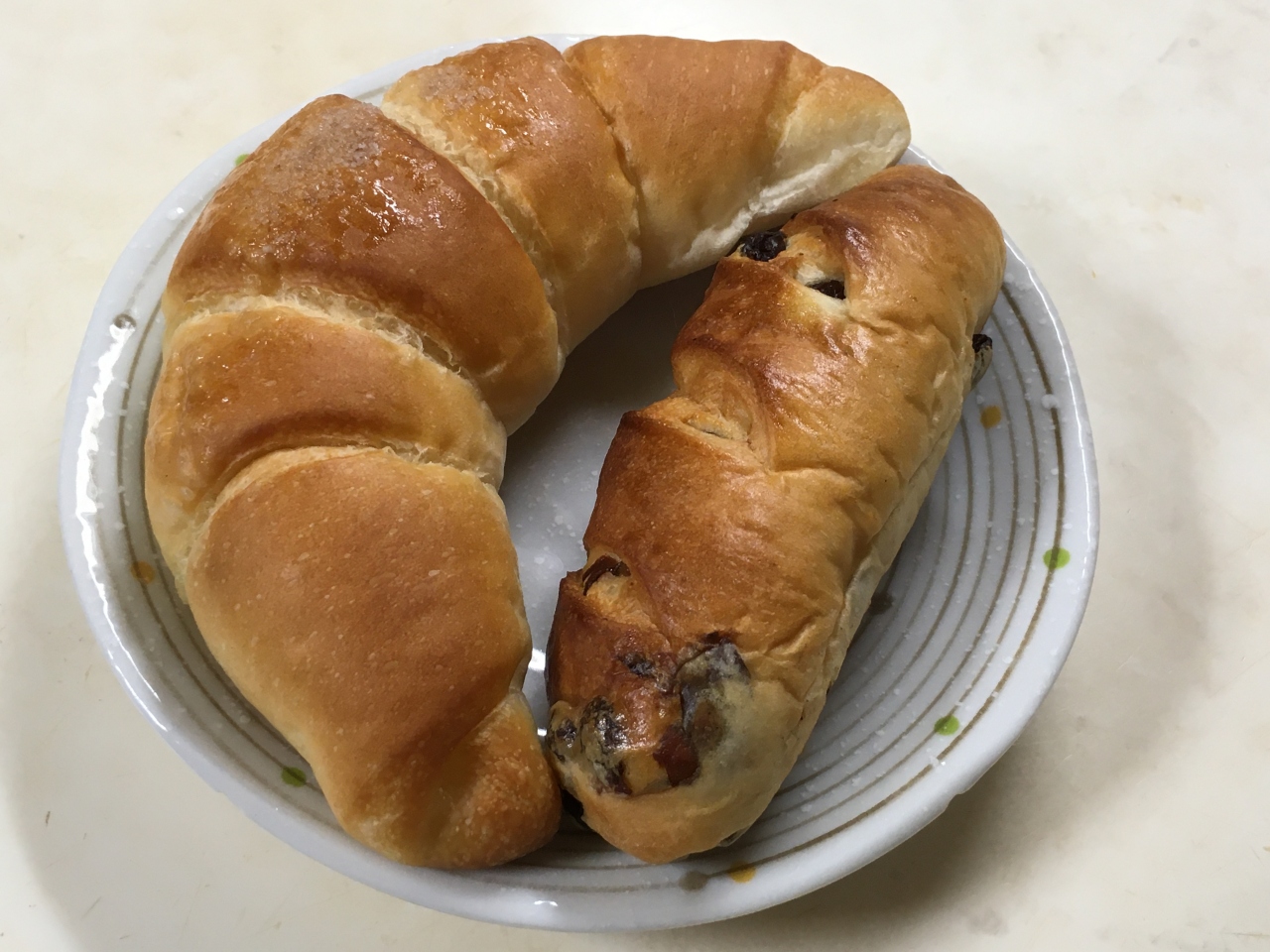 クルーズ船でのお花見に訪れ、お茶休憩を京阪シティモールでと思っていた時にちょうどお店の前を通りました。ハード系から菓子パンまで幅広いラインナップが揃っています。照明に照らされて陳列も綺麗、思わず中に入ってみたくなります。シャープな三日月型が特徴の塩パンロールはゲランドの塩がトッピングされてほんのり塩味、プチレーズンはしっとりとした生地にレーズンがたっぷり入っていて、レーズンの甘味が楽しめました。