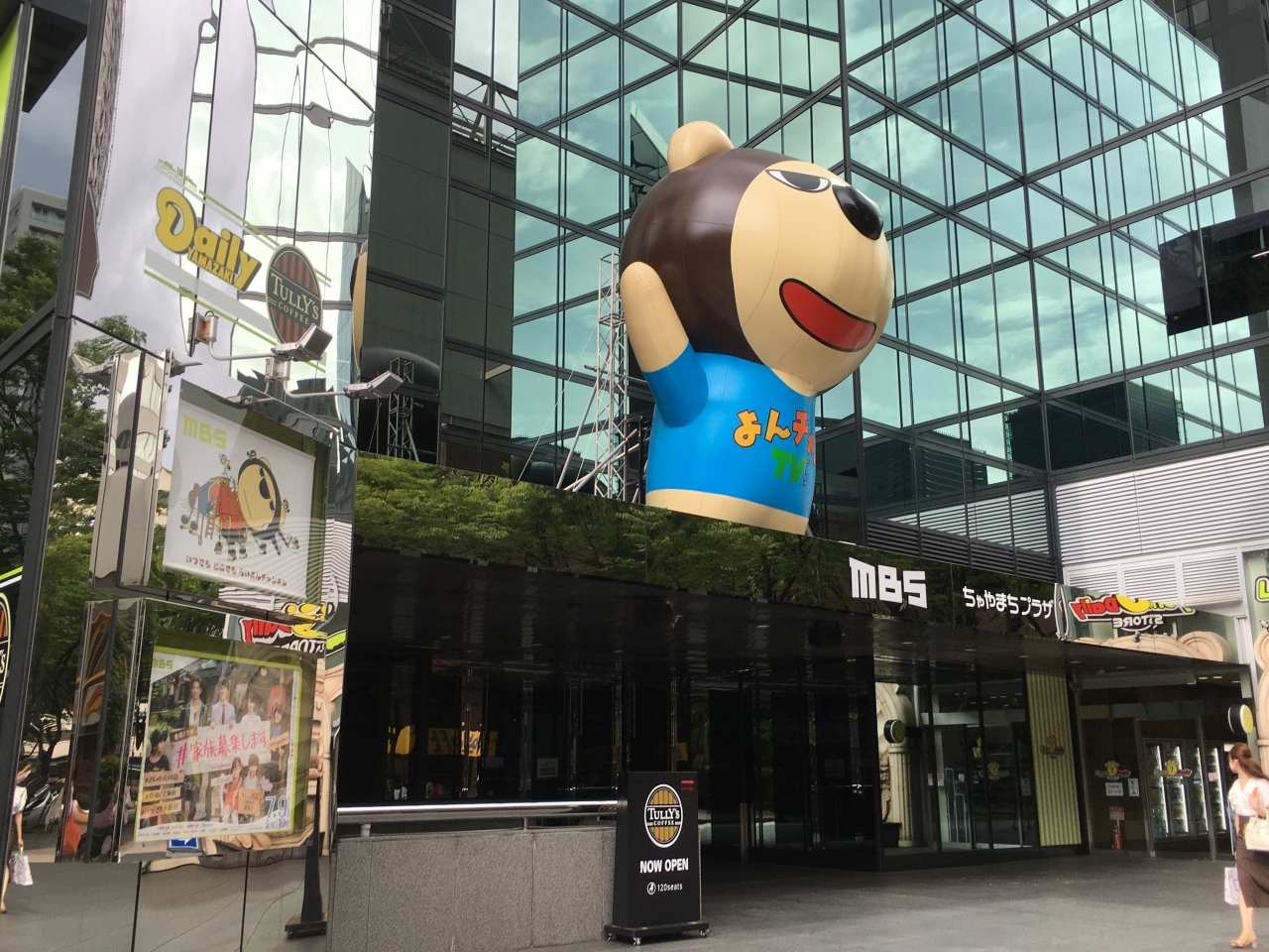 茶屋町の梅田ロフト前にある毎日放送(MBS)本社です。入口ではお馴染みのキャラクター、らいおんチャンが飾られていて親近感があります。1階にはタリーズコーヒーやコンビニ、毎日放送のグッズなどを販売しているショップもあり、一般の人でも気軽に入ることができます。