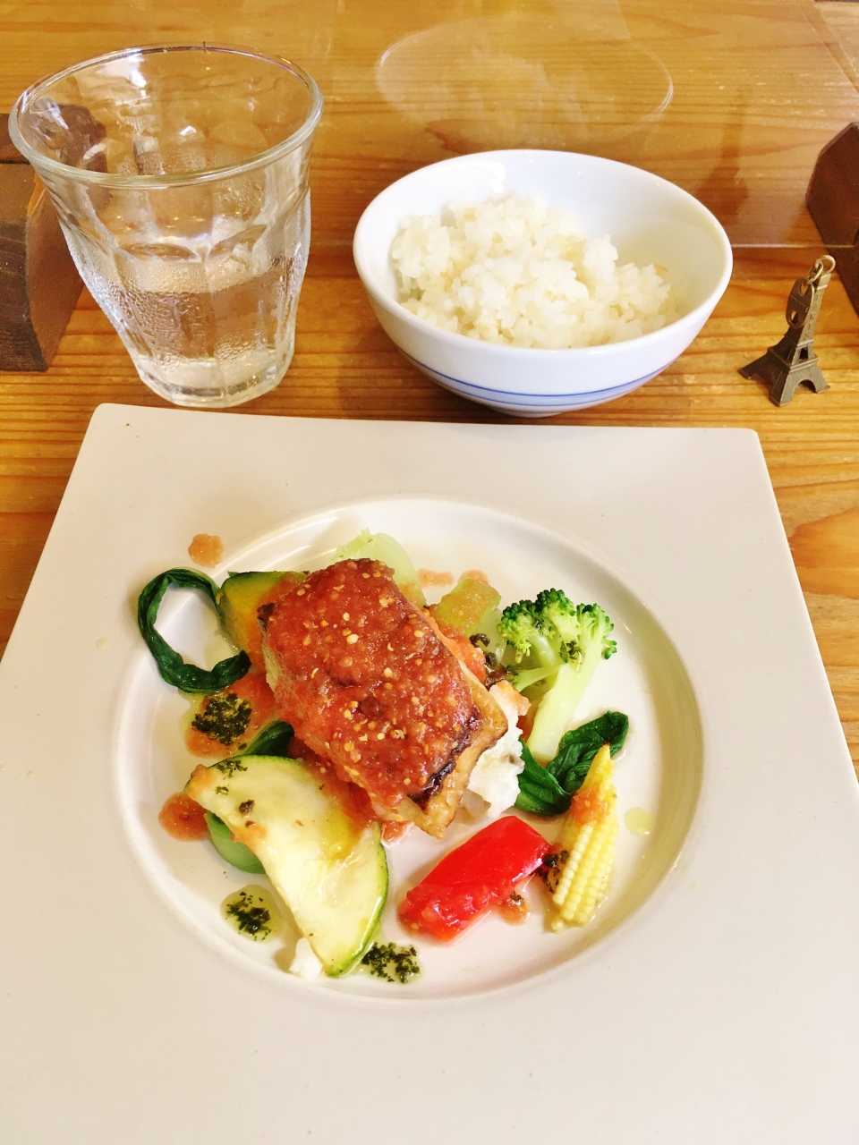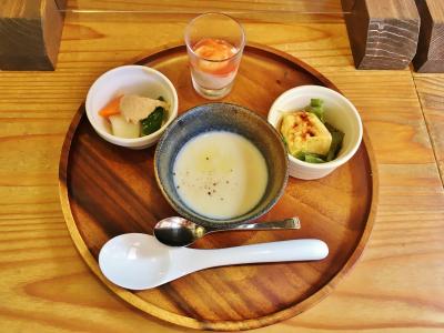地下鉄中崎町駅からすぐのところにありますが、少し入り組んだところにあって隠れ家的なお店です。とても小さな店内で予約済のお客さんで満席でした。予約していないお客さんも次々と来られて断られていました。ランチは定食のみで、オードブル3品とスープがまずお盆に乗せて出され、続いてメインとご飯が一緒に提供されます。メインは魚か肉か選べます。ポーションは少なめですが、どれも丁寧に工夫されてつくられています。良心的な価格で人気があるのも納得です。