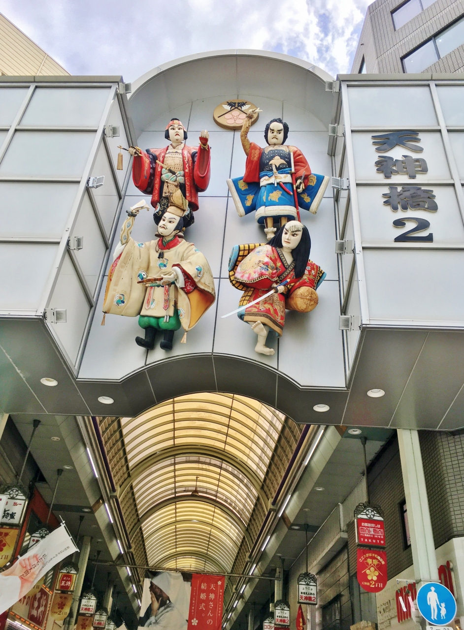 大阪天満宮へ向かう途中、商店街にあるカフェで休憩するために立ち寄りました。日本一長い商店街とのことで、規模も大きくアーケードがずっと続いています。周囲に立ち並ぶお店を眺めながら歩いていると、個性的なお店やオシャレなパン屋さんやスイーツ店など色々とあって賑やかな感じ、ゆっくりとお店を見てまわりながら過ごすのも良さそうです。