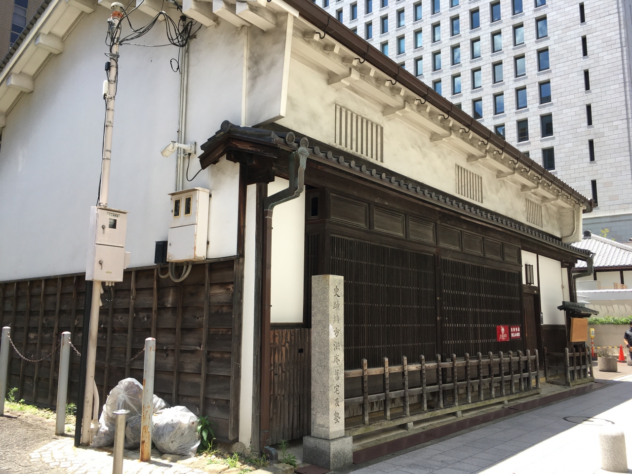 リーガロイヤルホテルの前に、ひっそりと石碑が建っています。石碑の周囲は植木が刈られて綺麗に整備されています。江戸時代には諸藩大名の蔵屋敷が立ち並び、この地には讃岐高松藩蔵屋敷がありました。蔵屋敷には舟が屋敷内へ直接入れるよう水門が設けられていたそうです。中之島を散歩していると、他にもこういった石碑を所々見かけました。