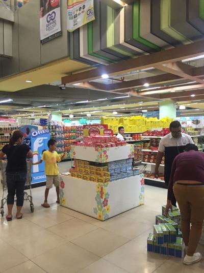 2階以上にもスーパーの洋服や日用品が売っていました。ここでビーサンとTシャツを買いました。どちらも大体100ペソと激安。
