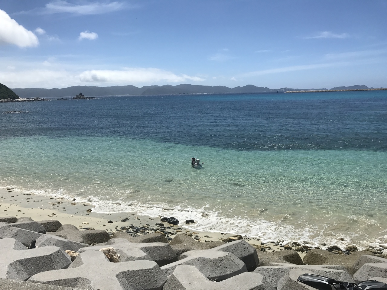 港からすぐなのにめっちゃ綺麗なビーチ。