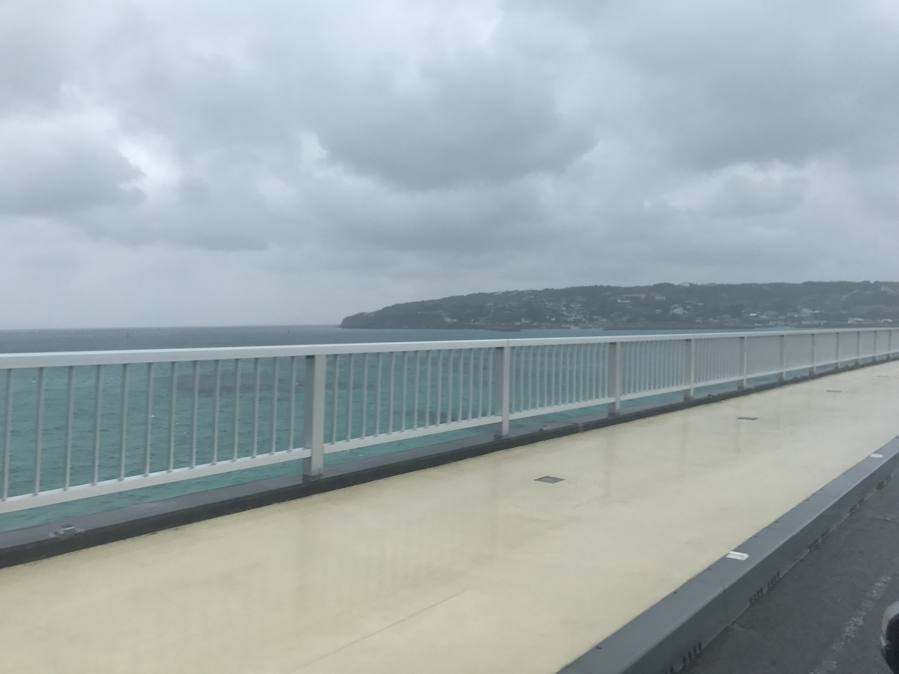 古宇利島に渡る橋で、両サイドには綺麗な青い青い海が見えます。