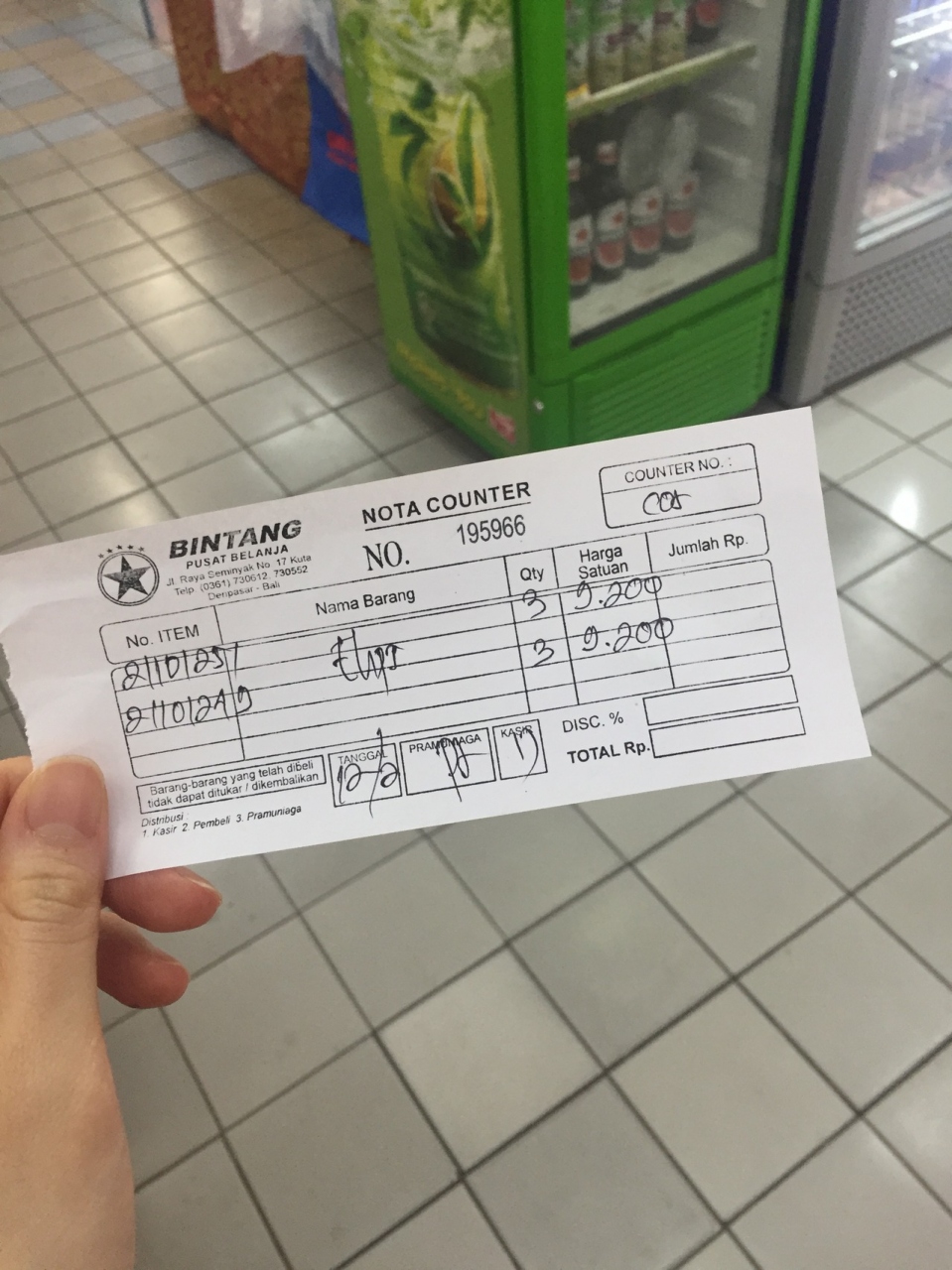薬局部分と食品部分に分かれてるのは日本のスーパーにちょっと似てて、薬局部分はカウンターで欲しい商品を伝えると、伝票を作ってくれて、その伝票をほかの食品とかと一緒のレジで渡すとその商品も用意しててくれました。
